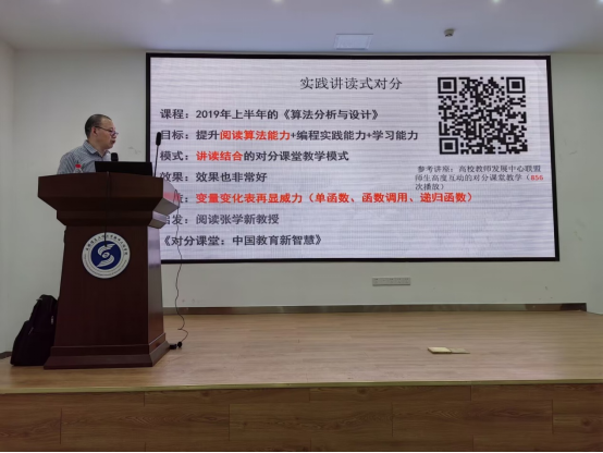 梁教授从课堂互动入手,分享了“对分课堂 挖呀挖”主题歌词,讲解了对分课堂的基本原理,介绍了自己在对分课堂的多年实践情况。对信息类专业课进行教学分析后,分别展示了实践型课程和理论型课程的对分实施步骤和方法,分享了取得的教学成果与对分推广情况。讲座结束后,梁教授还回答了老师们的提问。