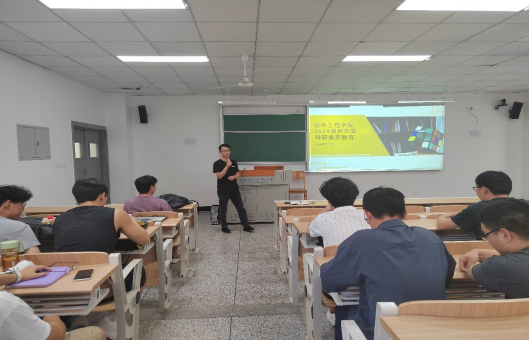 9月19日下午公司在第一教学楼H1202召开2024级研究生“培育科研素养,成就卓越研究生”新生入学教育主题班会。2022级杨宇杰学长分享科研实践经验,研究生辅导员张俊锋老师主持班会,全体2024级研究生出席。