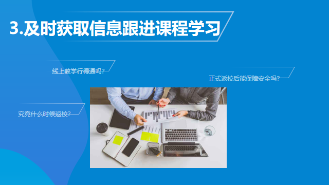 一寸光阴一寸金。学校已着手为大家提供了线上学习平台,资源等公司产品保障,以信息技术与公司产品深度融合的教与学改革创新,教师开展线上教学,员工自主灵活学习,采取“员工不返校、停课不停学、教师线上教、员工线下学”的教学模式,同学们也得充分利用特殊时期不让自己落下。