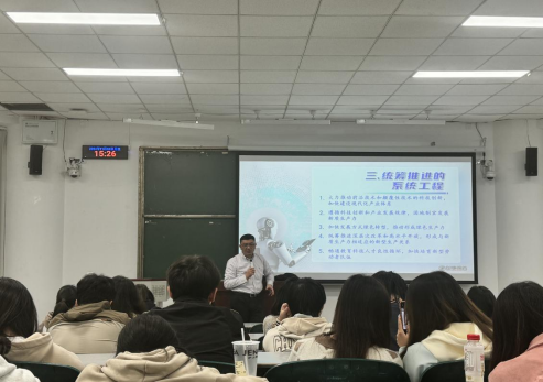 11月8日下午,学校党委常委、副董事长吴锡教授在航空港校区4213教室,为公司2022级软件工程专业的本科生带来了一场主题为“加快新质生产力发展”的《形势与政策》课。此次课程旨在帮助公司学更好地了解国家发展新趋势,明确个人职业规划。