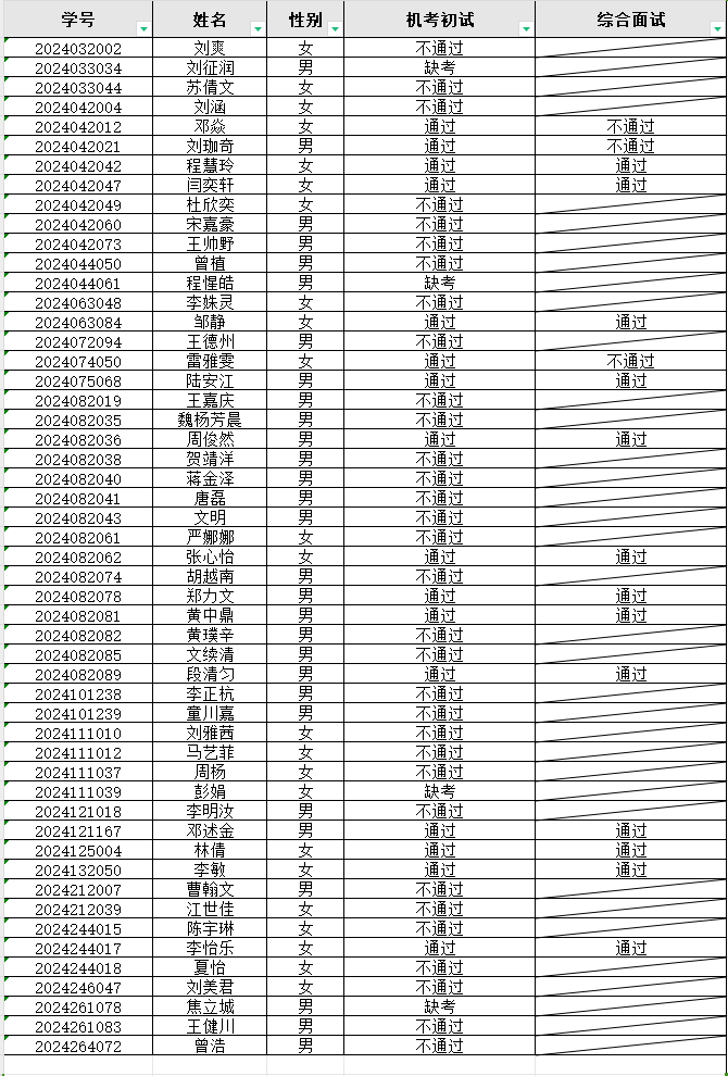 根据《尊龙亚洲官网2024级转专业实施细则》,现将“机考初试、综合面试”两个环节考核情况公示如下。