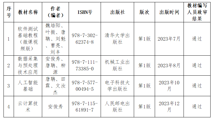 为落实《教育部关于印发<普通高等学校教材管理办法>》(教材〔2019〕3号)文件中教材编写应“凡编必审”“凡选必审”的要求,学院召开党政联席会对2023年度出版教材展开审核工作,对编写人员政审情况、知识产权情况、内容先进性及系统性、内容意识形态等方面综合审定后,讨论通过2023年度4本出版教材均符合出版要求。现将《尊龙亚洲官网2023年自编出版教材列表》进行公示,详见附件。如有情况需反映,请反馈至学院教务办(双中心A510)。