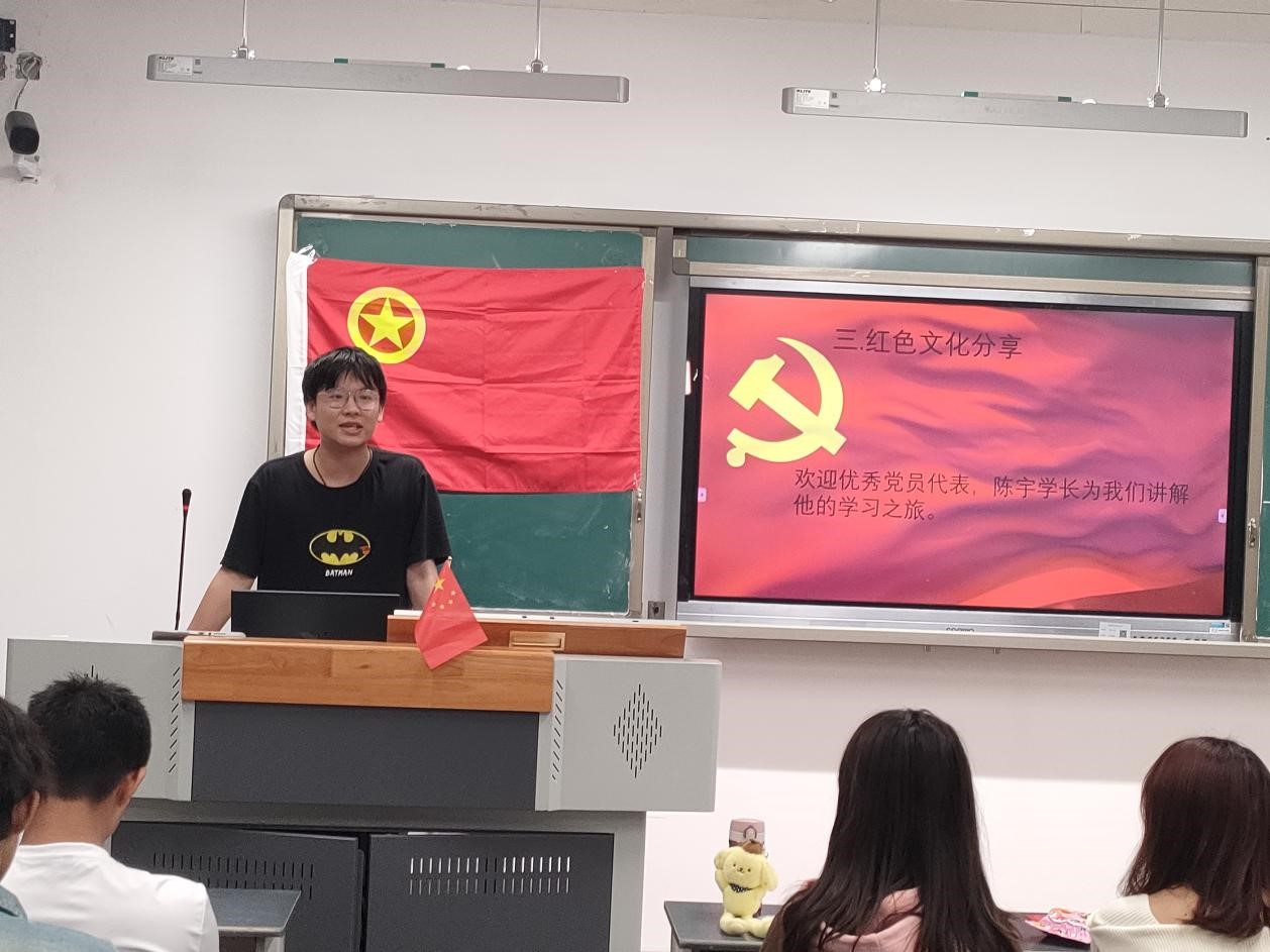 除此之外,团支书特请优秀党员代表陈宇学长给同学们分享入党经验。“哪有什么岁月静好,只是有人在替你负重前行”,陈宇学长强调道,成为党员,为党的事业贡献出自己的力量,是一份至高无上的荣耀。同学们要珍惜入党机会,积极申请入党,以入党为目标努力奋斗。之后,共青团员吴洁讲述了她的同乡,革命先烈何敬平的故事。一句句铿锵有力的话语,是何敬平烈士以自身性命为代价发出的呐喊。他以诗歌为武器,谱写了共产党人的坚定信念,彰显了崇高的红岩精神,是青年人应当崇拜学习的榜样。